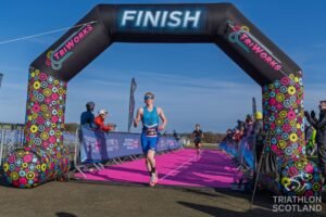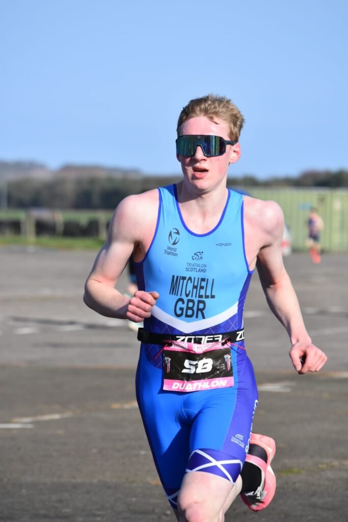 Came off the bike just behind another athlete, tucked in behind them for most of the last 2.5k, then kicked with about 500m to go. Managed to hold them off and finished 3rd overall, 2nd Scottish athlete, and 2nd U20. Not bad for the first one back.